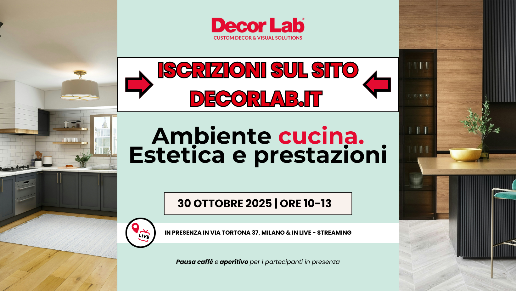 Per iscriversi al workshop cliccare qui:  https://www.decorlab.it/workshop/251030-cucina/